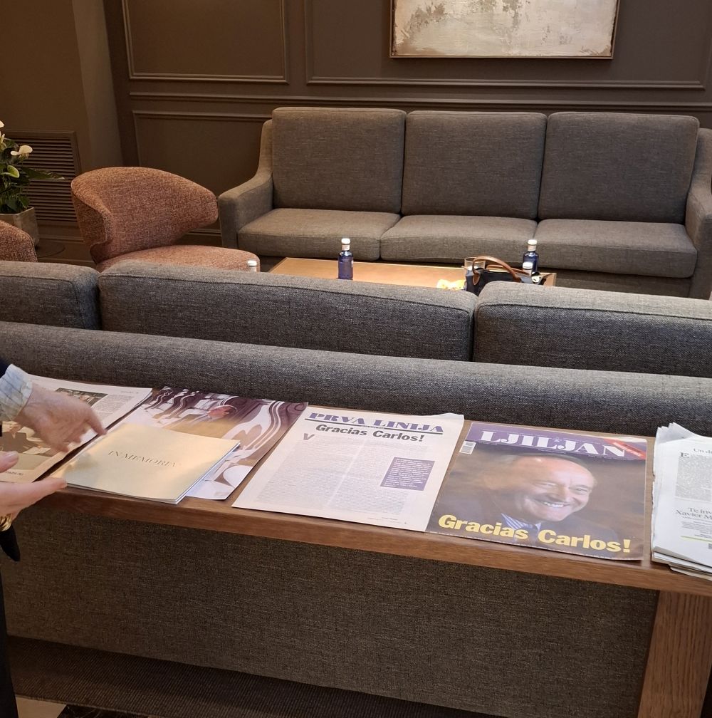 La embajadora de Bosnia y Herzegovina en el Reino de España, Vesna Andree Zaimović, y el ministro consejero Armin Zećo rindieron homenaje y depositaron flores durante el acto de despedida de Carlos Westendorp el 31.03.2026 en el Tanatorio San Isidro de Madrid. En esa ocasión, expresaron sus condolencias a la familia y mantuvieron una emotiva conversación con la esposa del fallecido, Amaya de Miguel, y sus dos hijos. Con sincero orgullo, la esposa del señor Westendorp mostró fotografías de sus actividades en nuestro país y artículos de revistas bosnias de aquella época, expuestos en la sala memorial.